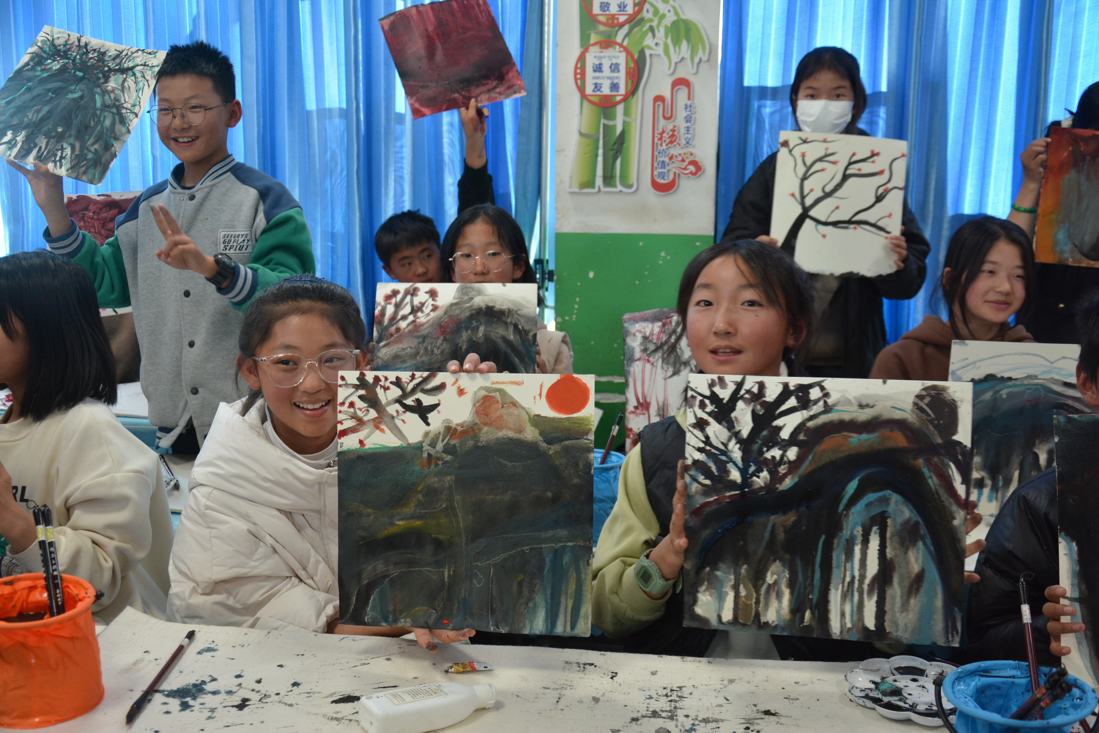 随后,他手把手教孩子们绘画冰雪的基本功。孩子们饶有兴趣地用笔墨作画,描绘着心目中的生态美景、冰雪世界,并自信大方地向记者展示画作。